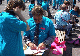 In the afternoon all Arbor Heights students shared their books in small groups with children from other classrooms and grades. Then there was an all-school recess and autographing party! Thanks to our PTSA for our beautiful T-shirts! Everybody was busy signing each other's shirts: